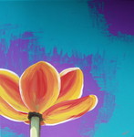 2008"Dat zou ik heel anders doen" zei Stefan toen hij mijn lelie schilderijtje zag. "Oké, hier heb je een doek en verf... doe maar" En dit is wat hij schilderde... voor de eerste keer...