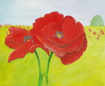 2008Heerlijke kleuren, eenvoudig tafereel. Warm en fris. Bloemen in een veld.