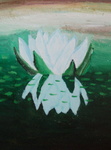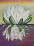 2008De weerkaatsing van het licht van de waterlelie in het water. Veelkleurig vrolijk doekje.