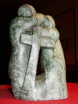 2005Een beeld van grijs Braziliaans speksteen. Leunt de ene mens op de ander? Of is het leunen meer een onderdrukken? Samen de weg gaan als je het moeilijk hebt is beter dan alleen'¦ of niet altijd?